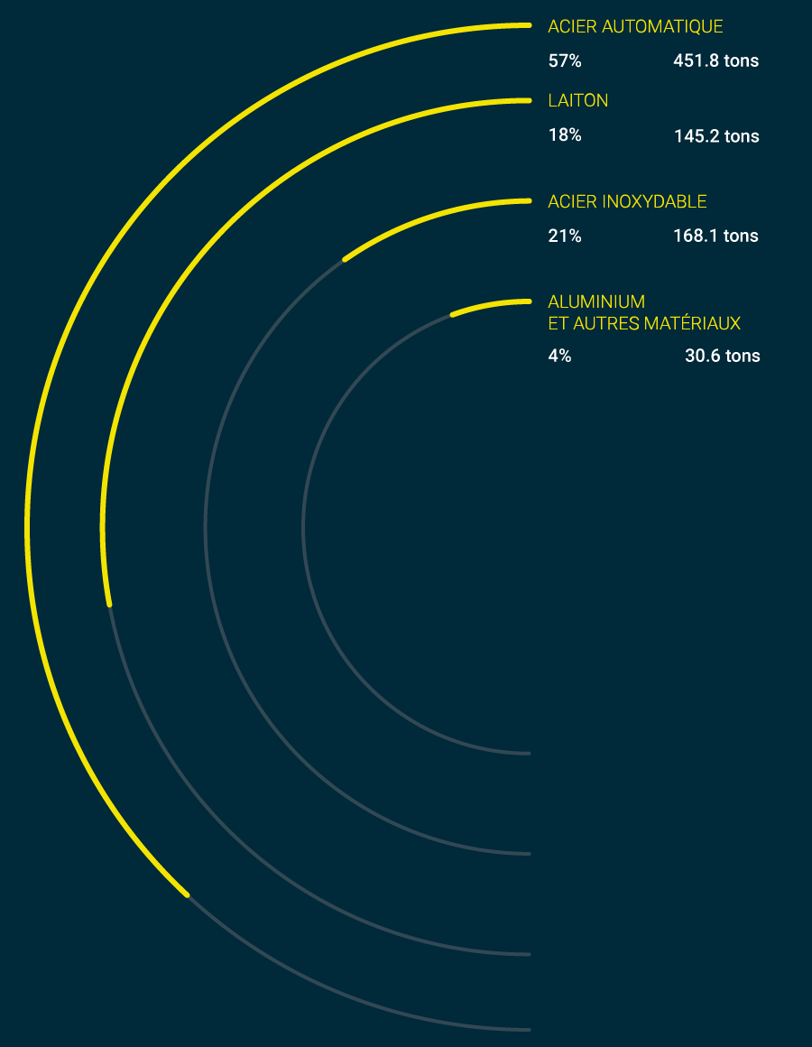 acier, aluminium et matières plastiques - sont codées par couleur et associées à un «